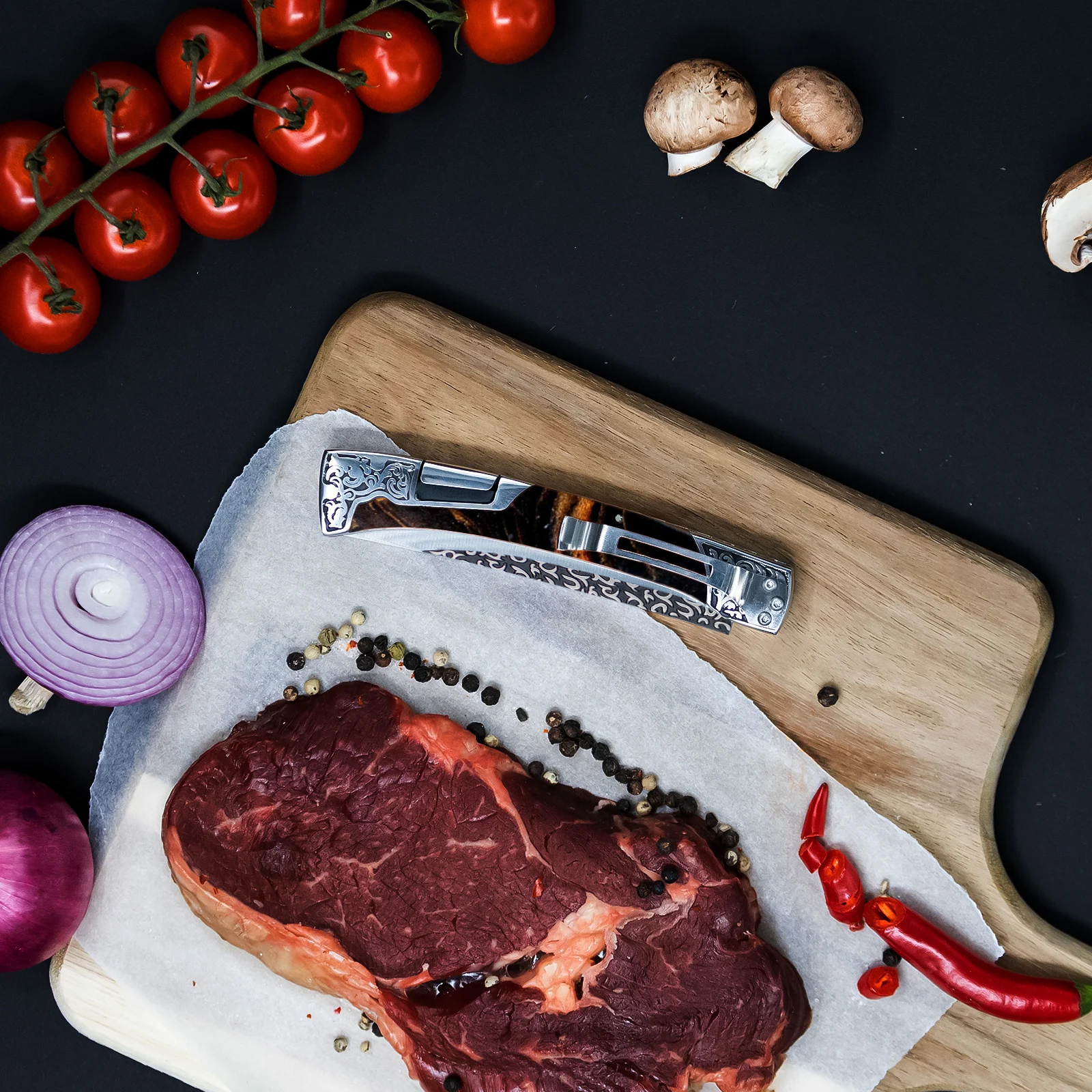 4.Ne vágjon nagy csontokat, ne üsse meg a nagy csontokat. Hentesmunkához, nagy, kemény csontok vágásához speciális fűrészekre van szükség, általában nagyon kemény acélból, például Carbon Steelből, széles szögű, durva, vastag pengével, amely súlyát tekintve kiegyensúlyozott, hogy le lehessen vele ütni. A Blades.ro még nem forgalmaz ilyen fűrészeket.