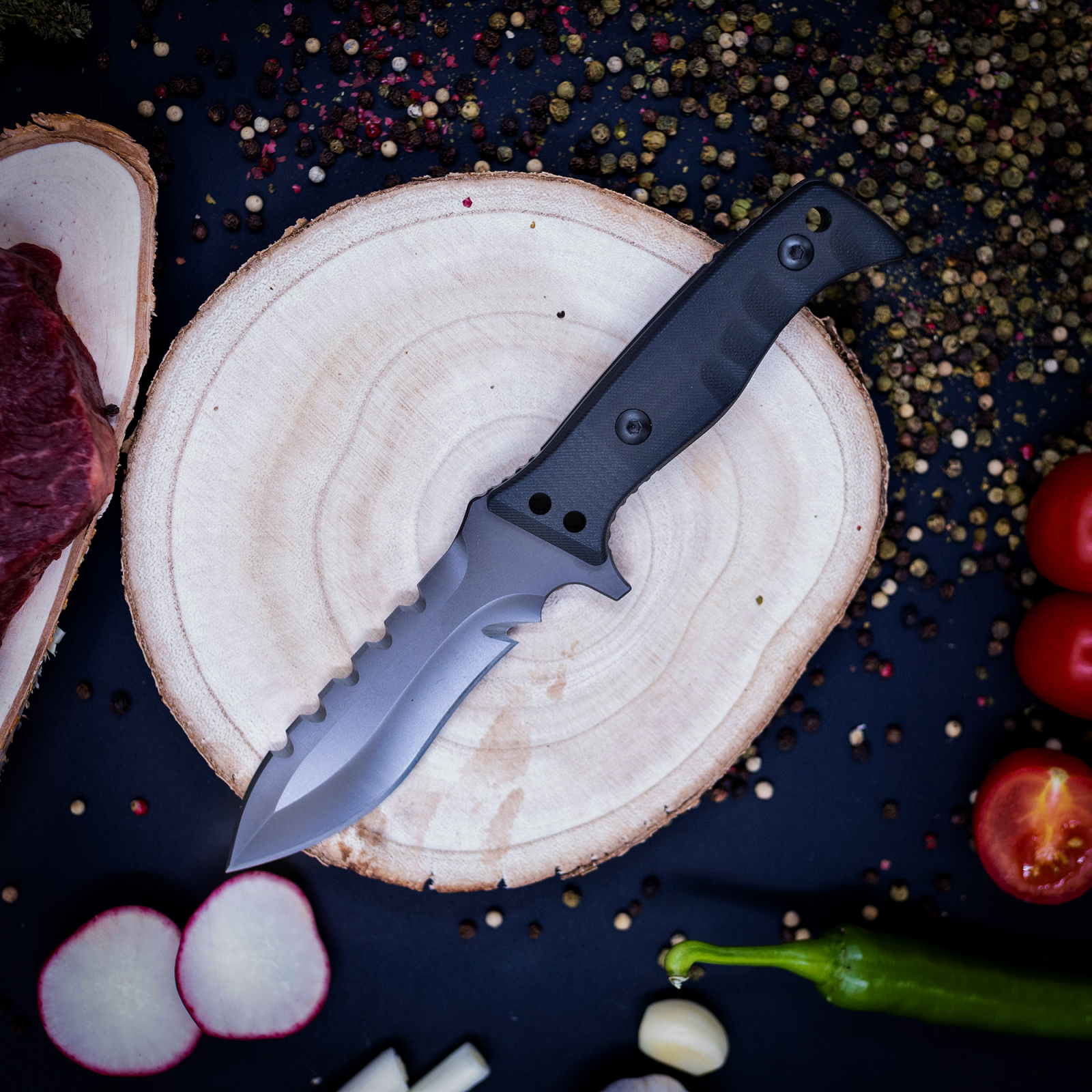 KDX13 kés, kempingezés és túrázás, rozsdamentes acél 420, G10 nyél, Kydex hüvely, 23,5 cm