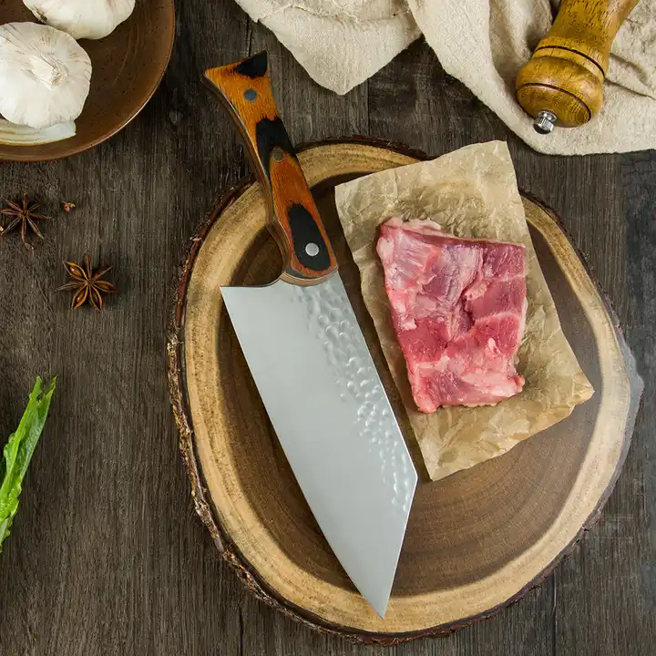 Finesse kés, konyha és kemping, fényes kalapácsolt felület, 5Cr13 acél, Pakka fa fogantyú, 29,5 cm