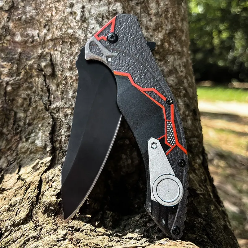 EDC04 zsebkés, kempingezés és túrázás, Rozsdamentes acél 440C, Alumínium fogantyú 3D Print, 22 cm